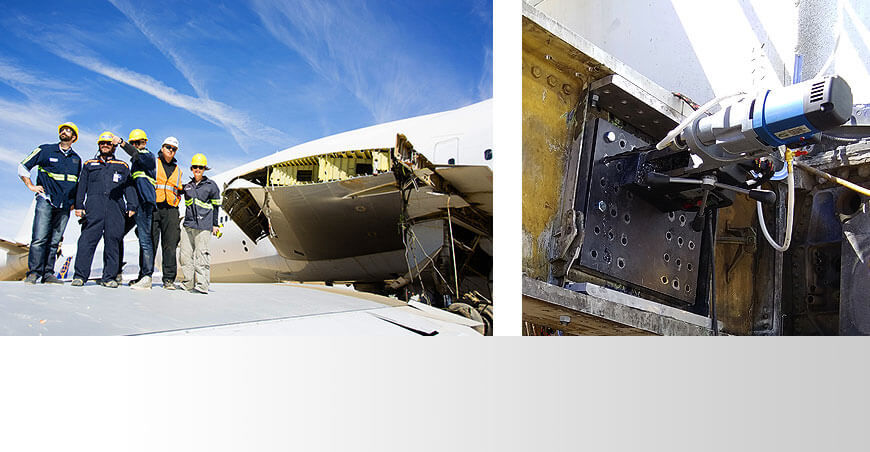 MAB 485便攜式磁力鉆在飛機的鈦工字鋼上切割232個孔
